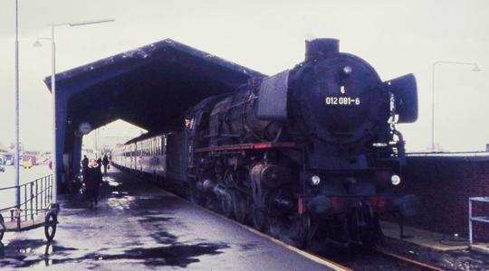 During its final year in passenger service, the loco was photographed awaiting departure at Nordeich Mole with an express for Rheine (Ems) and beyond on 29th January 1975.