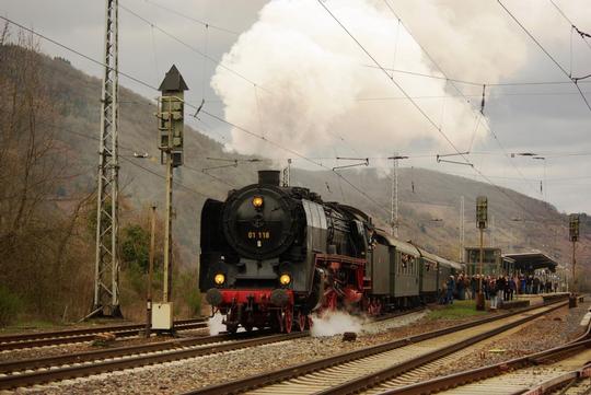 01 118 with a Koblenz to Trier Plandampf departing Bullay, 3 April 2010
