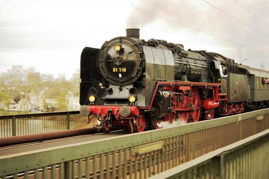 4-6-2 No.01 118 speeds across the Mosel bridge at Koblenz Moselweiss with a Trier-bound Plandampf service, 5 April 2010