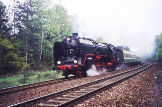 01 2137-6 working into Dresden with a Plandampf train, at Klotzsche on 3 May 1993.