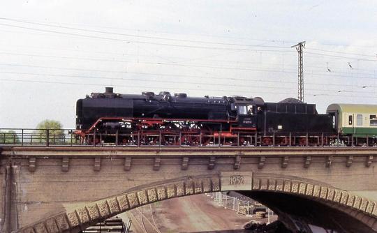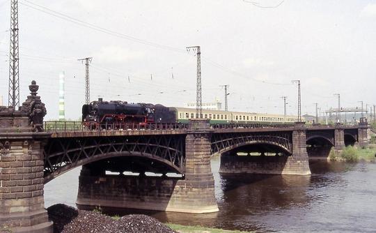No.01 2137-6 crossing the Elbe outside Dresden Neustady with a Plandampf working, en route to the Hbf on 1 May 1994.