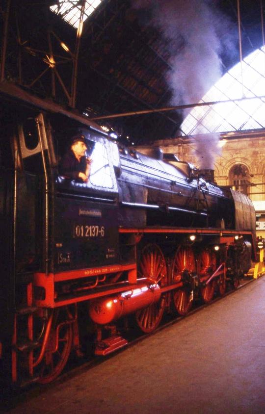 01 2137-6 at Bautzen station whilst working a Dresden to Görlitz plandampf on 2 May 1994