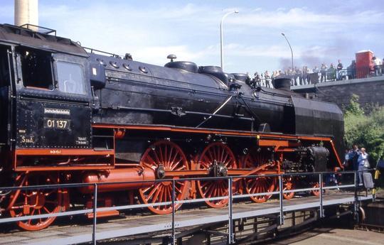 A classic German Pacific, 01 137 on the turntable at Dresden Altstadt Open Day, 29 April 1995.
