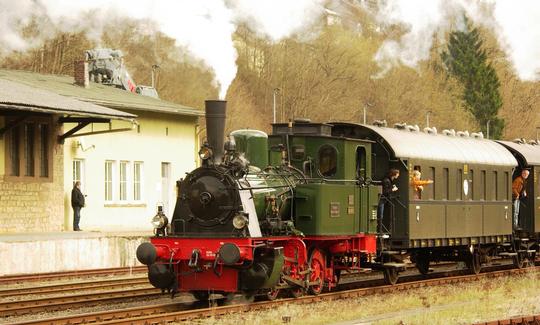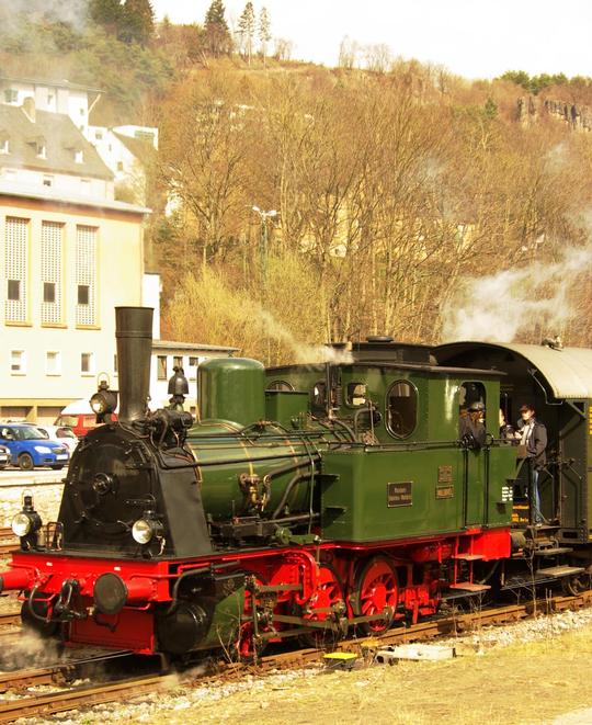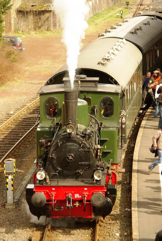 0-6-0WT 'Waldbröl' departing Gerolstein with the depot shuttle train during the Mosel Plandampf, 5 April 2010