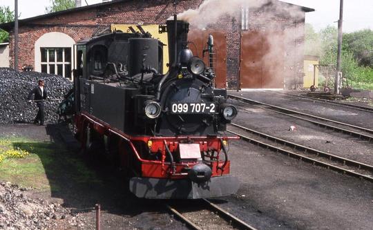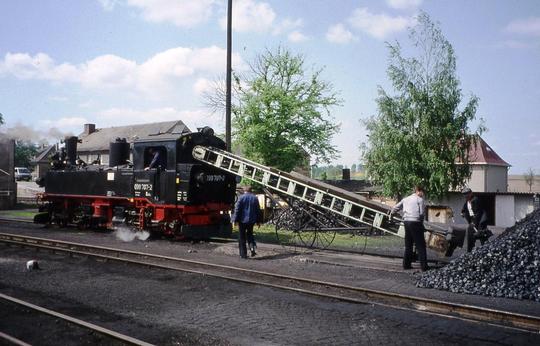At Mügeln shed finishing its work on 4 May 1993. Coaling up before going into the shed.