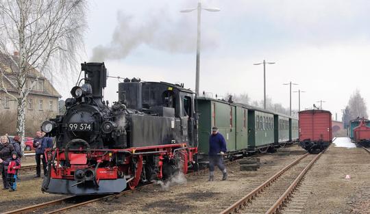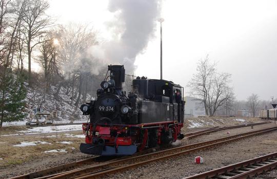 0-4-4-0T No. 99 574 upon arrival in Bf Mügeln, on 31 March 2013.