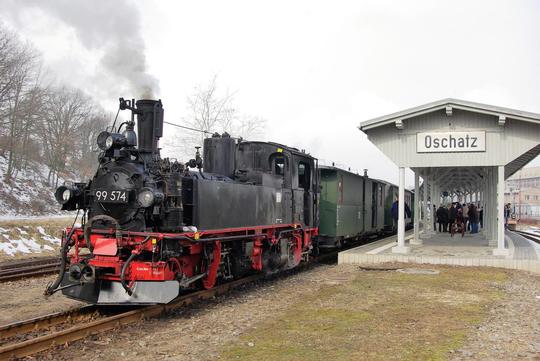 0-4-4-0T No. 99 574 awaiting departure with the afternoon train at Oschatz station on 31 March 2013.