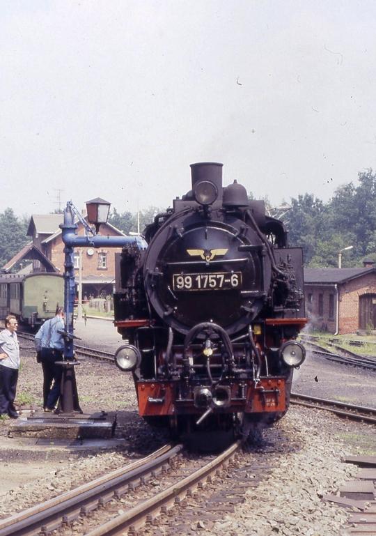 99 1757-6, photographed taking water during its stop at Bertsdorf on 11 July 1991.