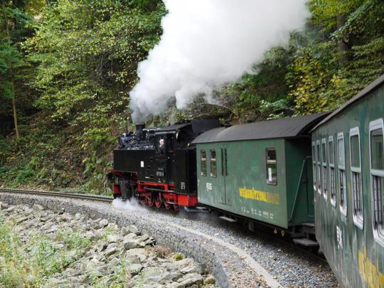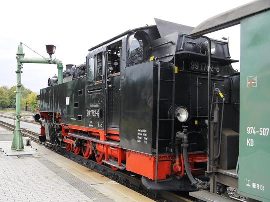 The massive nature of the 750mm gauge tank engine is amply shown in this side elevation at Kurort Kipsdorf station on 1st October 2018
