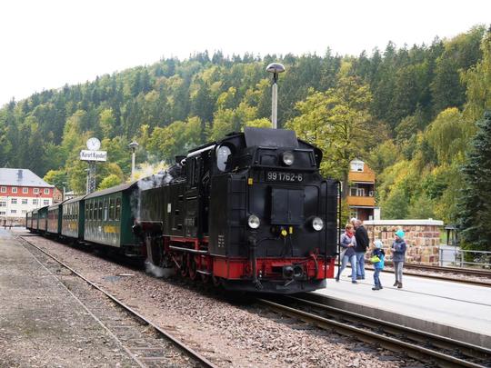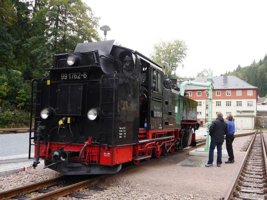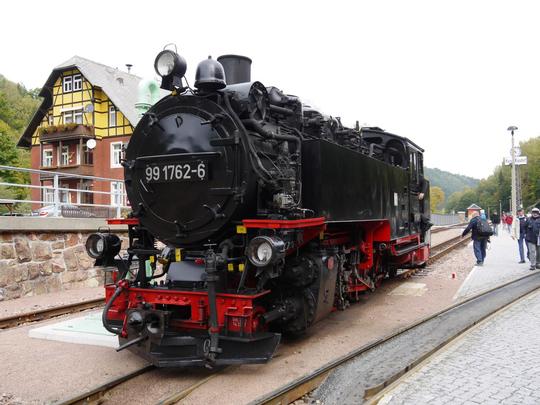 Having run round the train she's ready to depart from Kurort Kipsdorf station on 1st October 2018