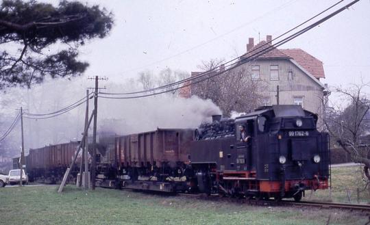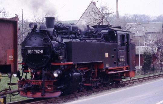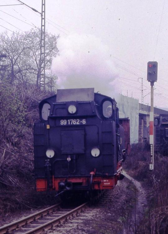 Arriving under the main line at Freital-Hainsberg on 5th April 1991.