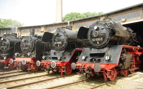 Pacific 03 1010-2 on the right as part of a display of locomotives around Halle P depot turntable on the occasion of a festival Open day, 4 July 2009.