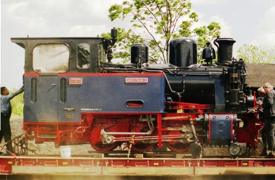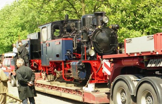 'Nicki+Frank S' on a low-loader whilst visiting Rügen, at Putbus 29 May 2001