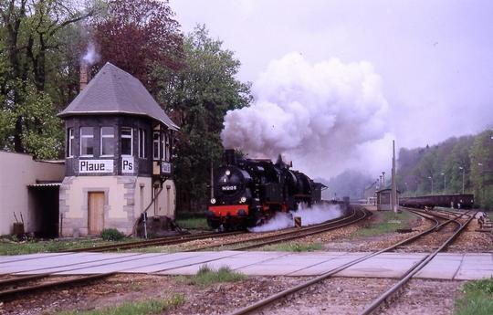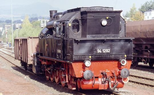 94 1292-5 arriving at Arnstadt with a freight Plandampf on 5 May 1994.