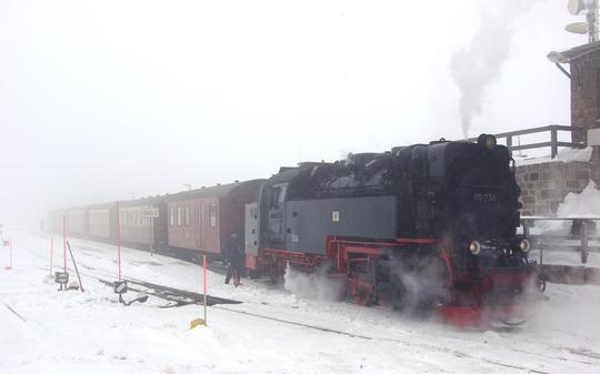 99 236 (99.7236-5) arriving in the snow from Wernigerode, at Drei Annen Hohne 28 March 2013.