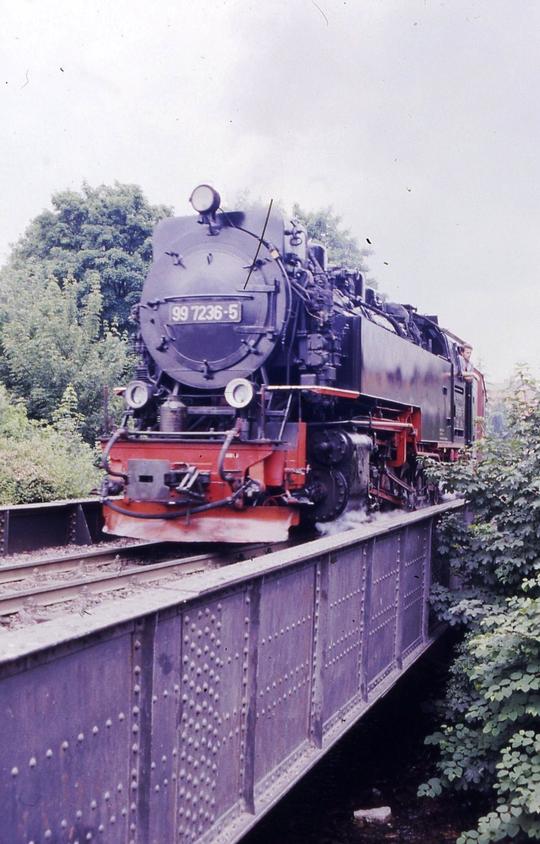 Crossing the river bridge outside Wernigerode Westerntor station on 16 July 1991