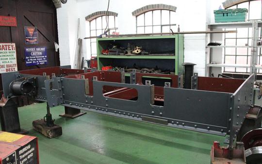 The frames of the little 0-6-0 'Liassic' are upside down and painted as the restoration on the engine proceeds in 2016.
