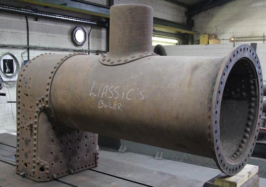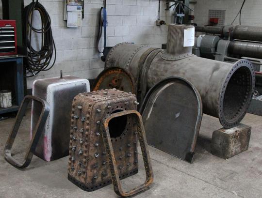 A 2015 photo of 'Liassic's boiler showing new and old inner fireboxes and back plate.