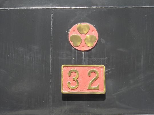 The symbol of the owner of the loco and the number in brass plates on the tank side.