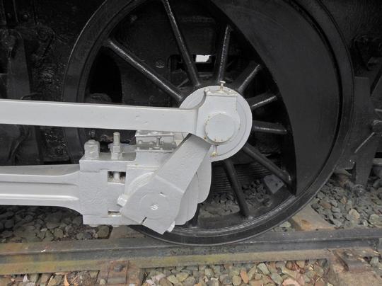 The connecting rod takes the drive to the third coupled axle in this design as this photo shows. The return crank and eccentric rod are also in shot.
