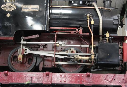 Detail of the Hackworth valve gear. Notice the crosshead driven feedwater pump.