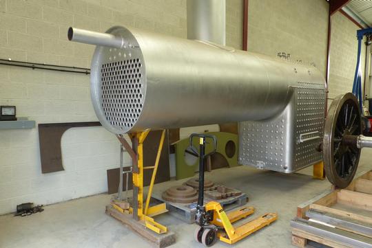 The boiler was the first major component to be completed. It is built to modern standards with a welded barrel unlike the original locos which had a riveted design. It will be kept stored dry until the rest of the loco is completed