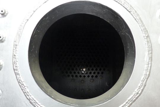 The firebox seen through the firehole, showing that the boiler is fully tubed and ready for testing when the time is right. 25th August 2018.