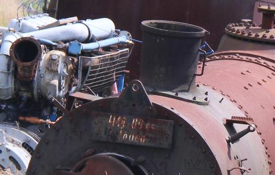 Here is the evidence that this is the boiler of 2364. This rusted, faded plate attached to the boiler appears to read '411.09.65' - the Hungarian number of the loco.
