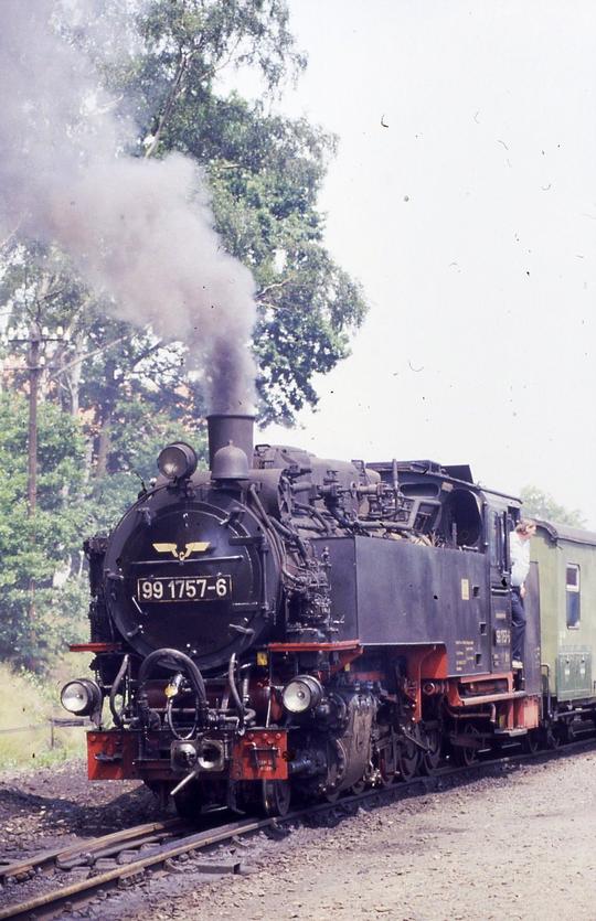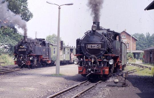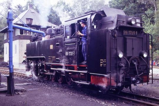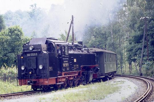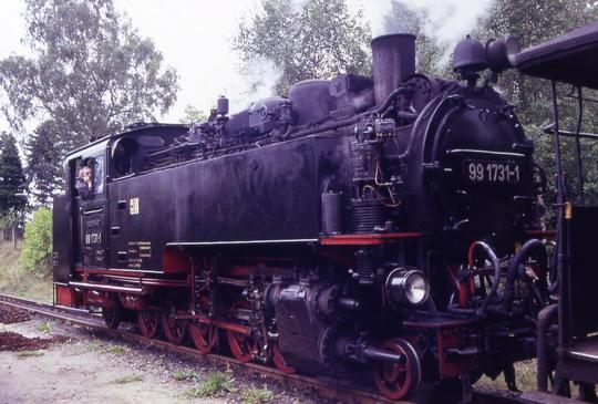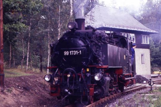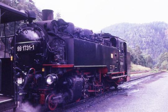 99 1731-1 in Bertsdorf station and during its ascent to Kurort Oybin on 11 July 1991