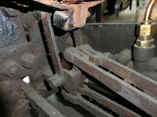 If you think it was cramped between the frames of a standard gauge loco, how much more so was it on an 18 inch gauge inside cylinder loco? Here you can see the Stephenson link valve gear and one connecting rod, a little dusty.