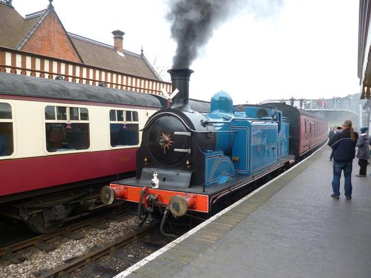 Rear end view on it's visit to the English Churnet Valley Railway on February 24th 2019. The striking 'Perth Blue' is shown to good effect.