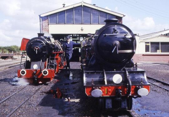 No.11 'Black Prince' with No.1 'Green Goddess' outside New Romney depot on 28 August 1989