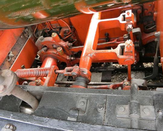 A look between the frames reveals the inside Stephenson Link valve gear.