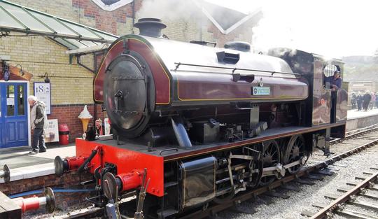 0-6-0ST 'Victor' after arrival at Lakeside station on 4 May 2019