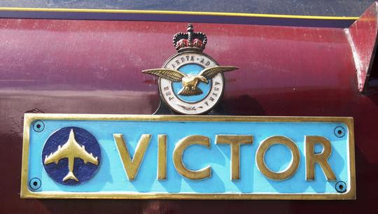 Surmounted by the Royal Air Force crest, 'Victor's nameplate pays homage to the Handley Page Victor nuclear bomber of the 1950s