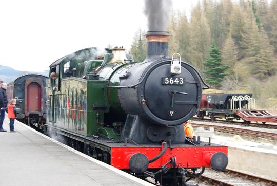 5643 running round its train at the Bolton Abbey end of the Yorkshire Dales Railway on 20 March 2016.