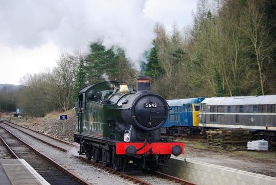 No. 5643 backing on to its train in Embsay on the Yorkshire Dales Railway on 20 March 2016.