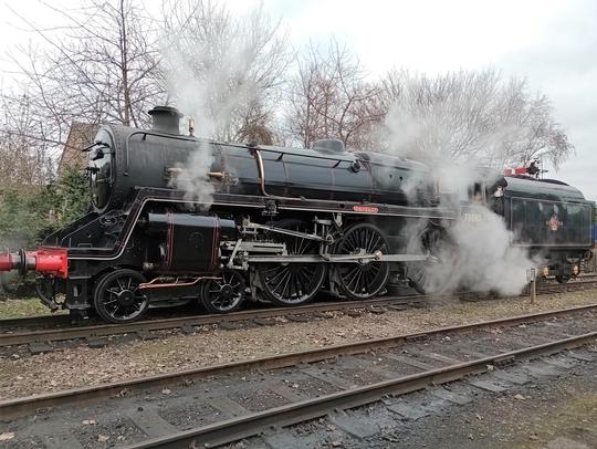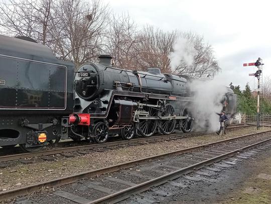 BR Standard 5MT 4-6-0 No. 73082 'Camelot' visiting the Great Central Railway's Winter Steam Gala from its home on the Bluebell Railway, 28th January 2023.