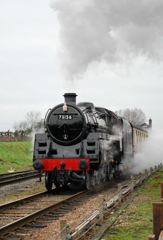 Britiah Railways class 5 No. 73156 gets into it's stride on the Great Central Railway during the their Winter Gala, 24th January 2020.