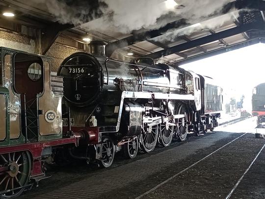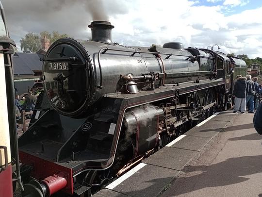 A nice back lit photo of this BR Class 5 loco when it was visiting the Bluebell Railway's Giants of Steam Gala from the 15th of October 2022
