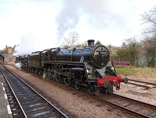 73156 coupled to sister BR Class 5 73082 during the Great Central Railway's Winter Steam Gala on 28th January 2023.