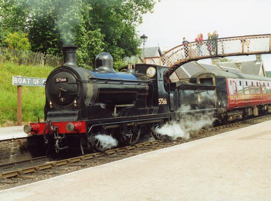 The former Caledonian Railway loco photographed running in BR black as 57566 at Boat of Garten station.