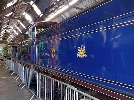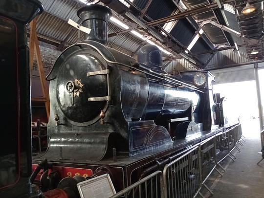 On a visit to the Spa Valley Railway, far from home in southern England, No. 828 is displayed in the shed at Royal Tunbridge Wells.