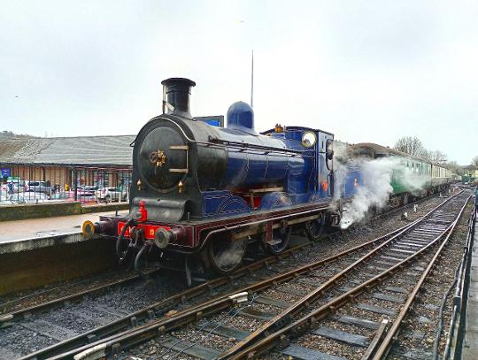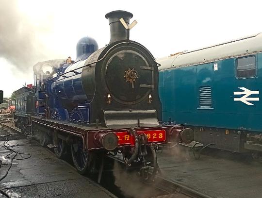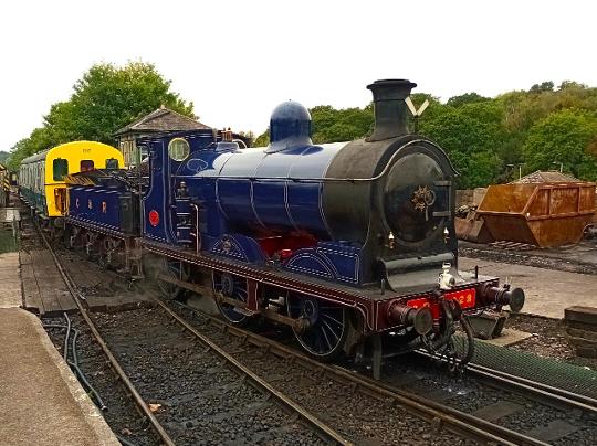 On a visit to the Spa Valley Railway, No. 828 shows off its glorious Caledonian Railway blue paintwork, along with the arms of Scotland, which the railway adopted as its symbol.
