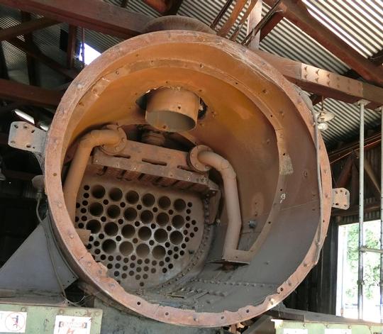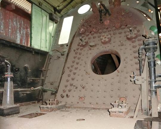 Inside the smokebox in 2018. The superheater tubes have been removed, as has the blastpipe.