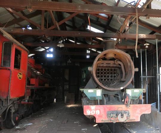 Inside the storage shed in 2018 alongside stored 706 'Narrogin'.