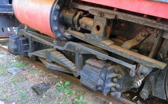 leading bogie, left hand cylinder and crosshead. Connecting rod missing.
