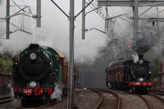 There is an annual train race in Sydney which is held on the Queen's birthday holiday weekend. In 2017, 3016 does battle with the more modern contender, 3642.