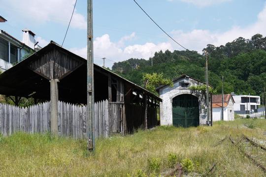The depot is on the now closed Amarente line, some 300m outside Liveraco Station - with welded closed gates and completely boarded up windows - in which both 0-4-4-0T CP E162 (front) and 2-8-2T Norte 103 are 'detained'.