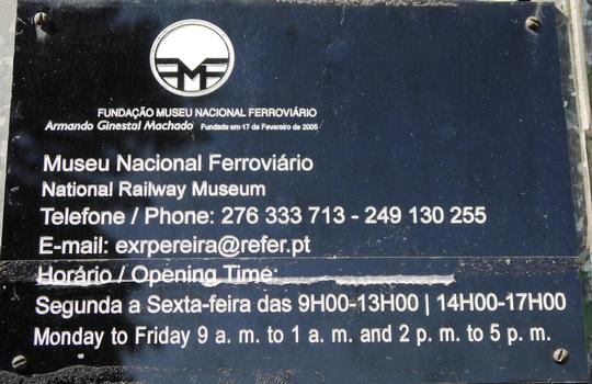 the notice board outside the FMNF, Tv. Estação, Chaves, Portugal giving details of opening times in both Portugese and English. N.B. It is unusual that the museum is closed at weekends, i.e. only open M-F whereas most of the others are closed on a Monday